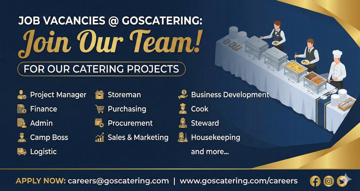 GOS Catering, a leading national provider of catering and camp services for the Oil & Gas, Mining, and Industrial sectors, is seeking highly motivated and qualified professionals to support our expanding projects across Indonesia. We are committed to delivering excellent service through competent, professional, and high-integrity personnel.We are now opening career opportunities for various positions from project management and operations to kitchen and housekeeping teams with placements across multiple project locations.